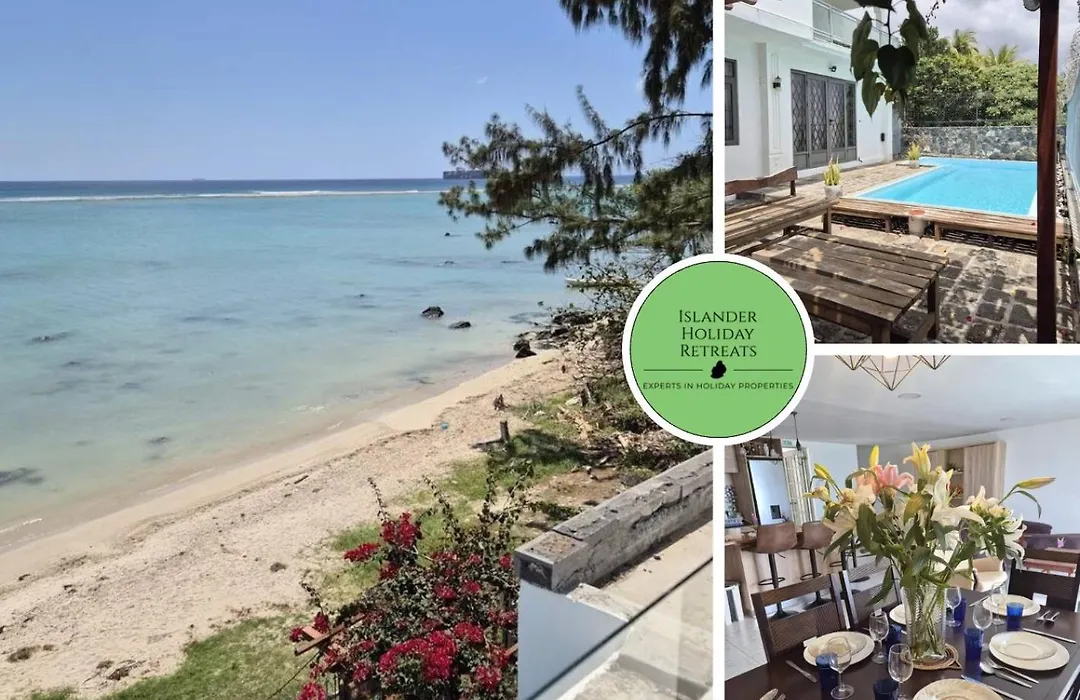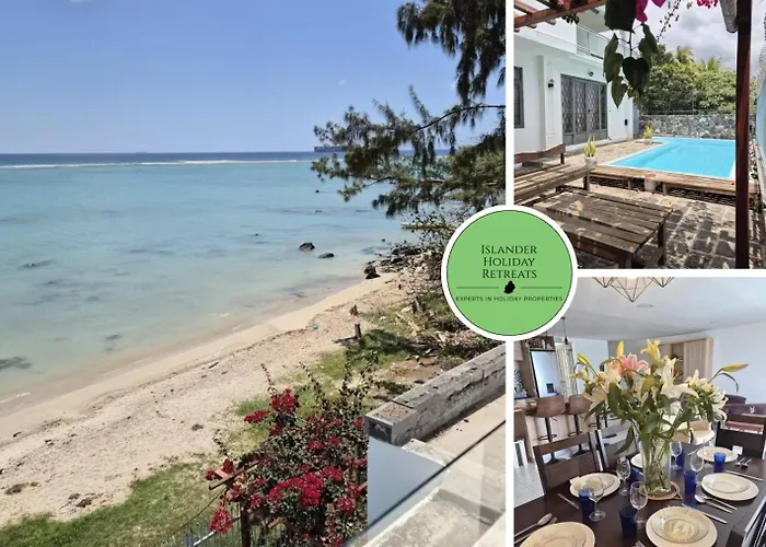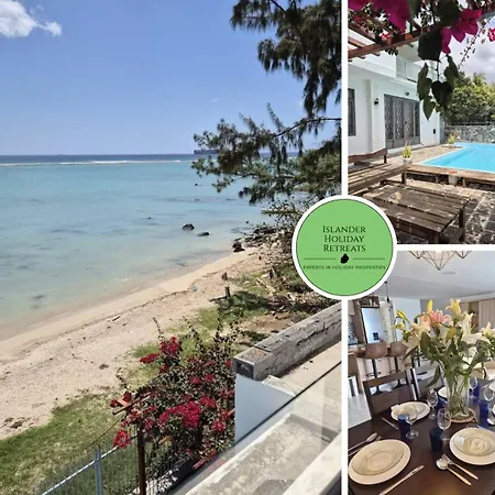 Die am Strand Crab'S Cove - Villa Pieds Dans L'Eau Avec Piscine Baie-du-Tombeau liegt in 10 Fahrminuten Entfernung vom Chinatown und verfügt über eine Terrasse mit Blick aufs Meer.